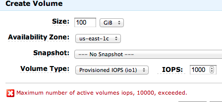 I would prefer to use this new EBS backed MongoDB over the instance store SSDs, but there´s a catch, there´s always a catch: As of now, one user can only have 10 of them, or being strict: you can only have 10,000 of them ( iops ).